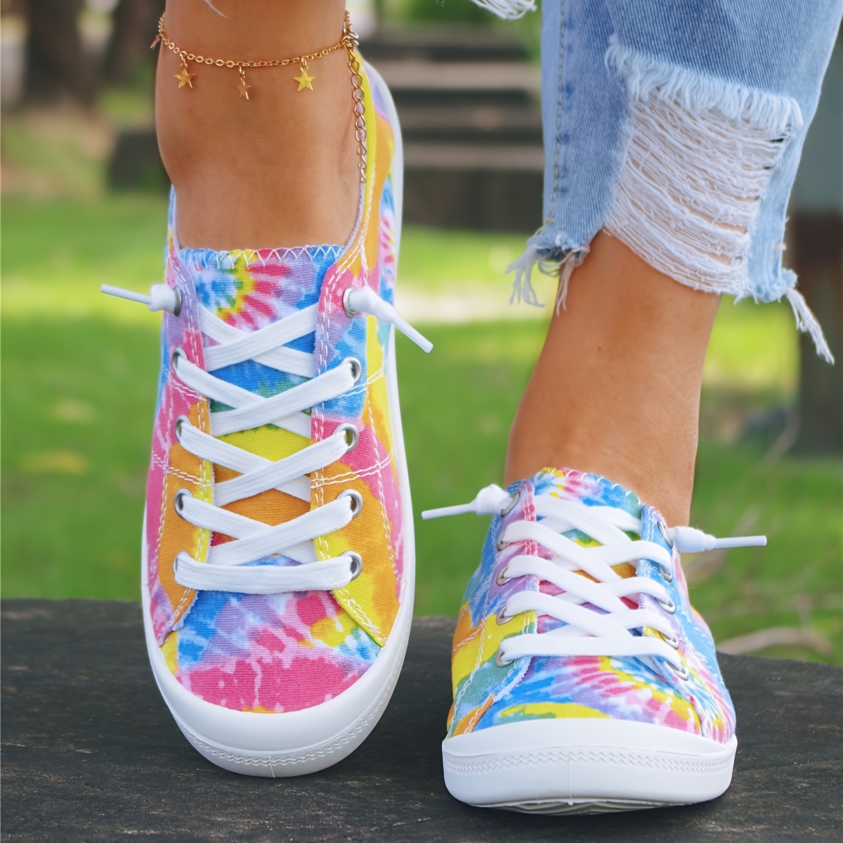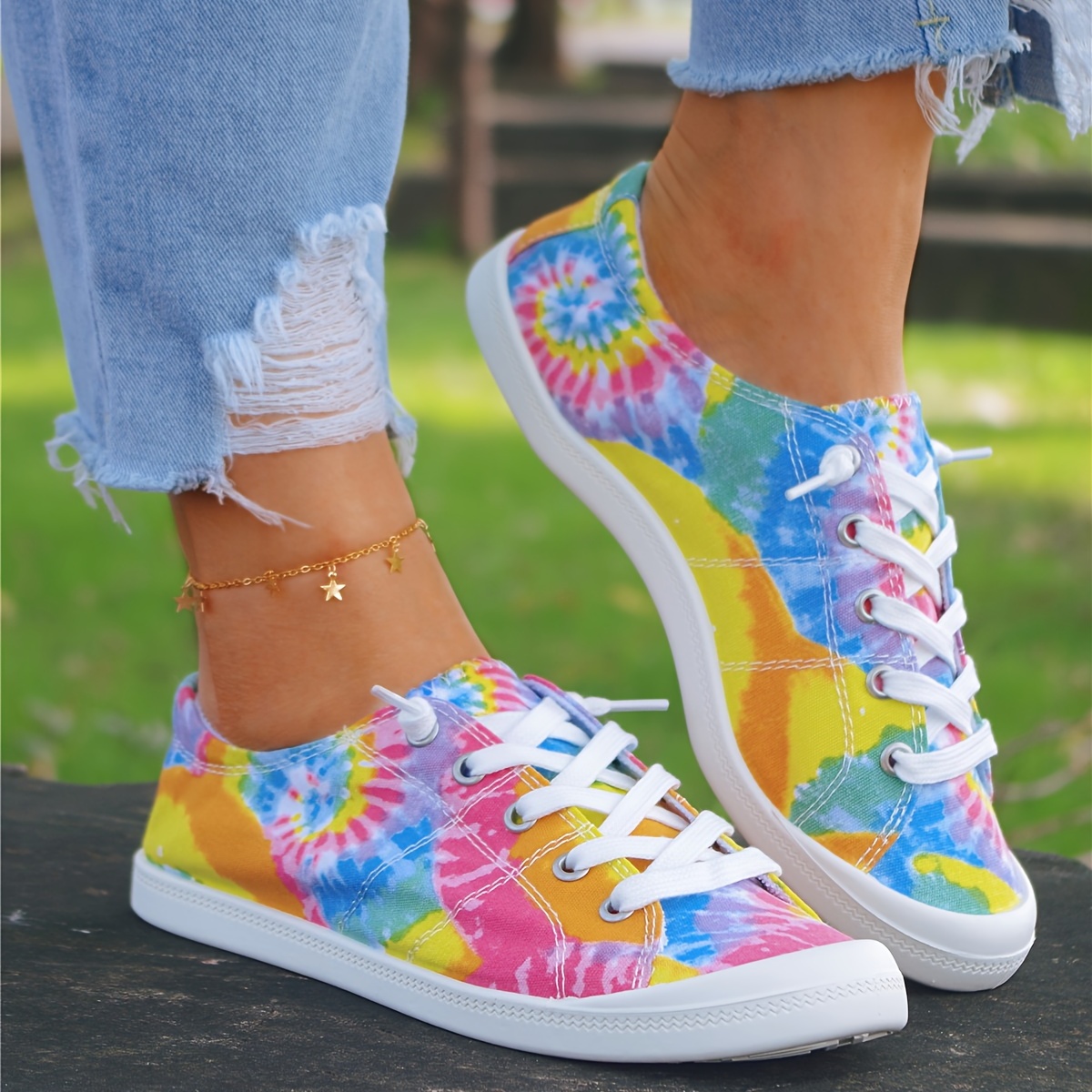 Colorful Tie-Dye Canvas Sneakers for Women - Comfortable Lace-Up Low Tops for Casual Wear