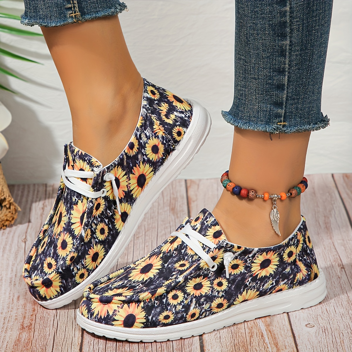 Women's Sunflower Canvas Shoes, Casual And Durable Walking Slip On Loafers, Fashion Sneakers For Everyday Wear