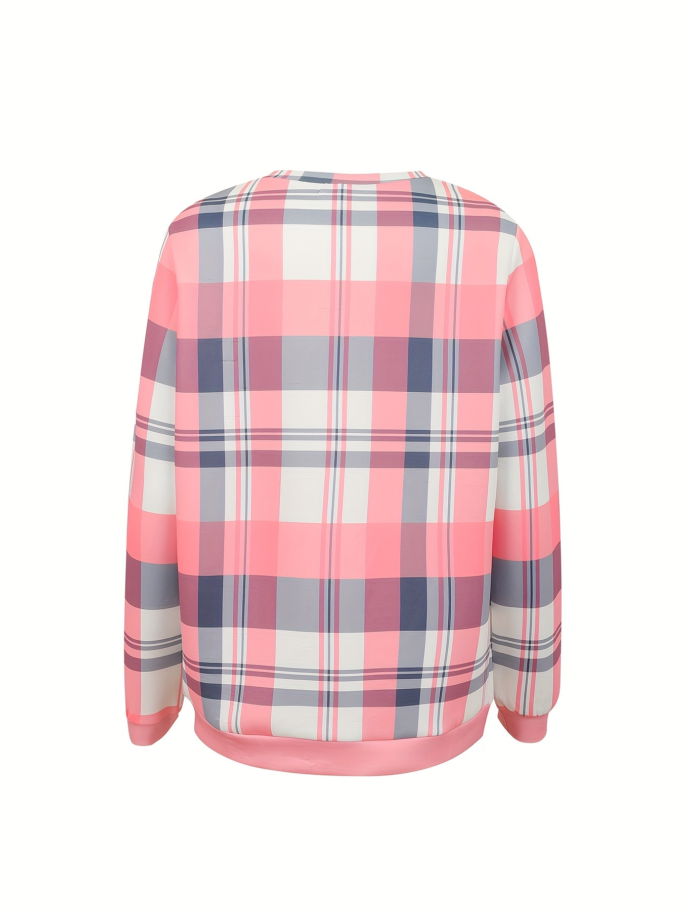 Spring/Fall Plaid Waffle Knit Sweatshirt - Women's Comfy Long Sleeve Crew Neck Pullover, Easy Care Casual Top