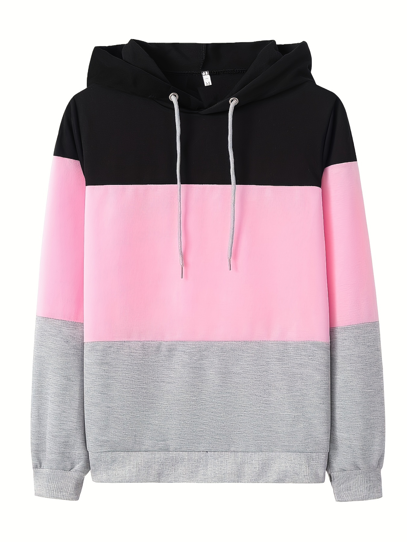 Casual Style Women's Color Block Hoodie - Long Sleeve, Drawstring, 100% Polyester Knit, Easy-Care, Micro Elastic Fabric