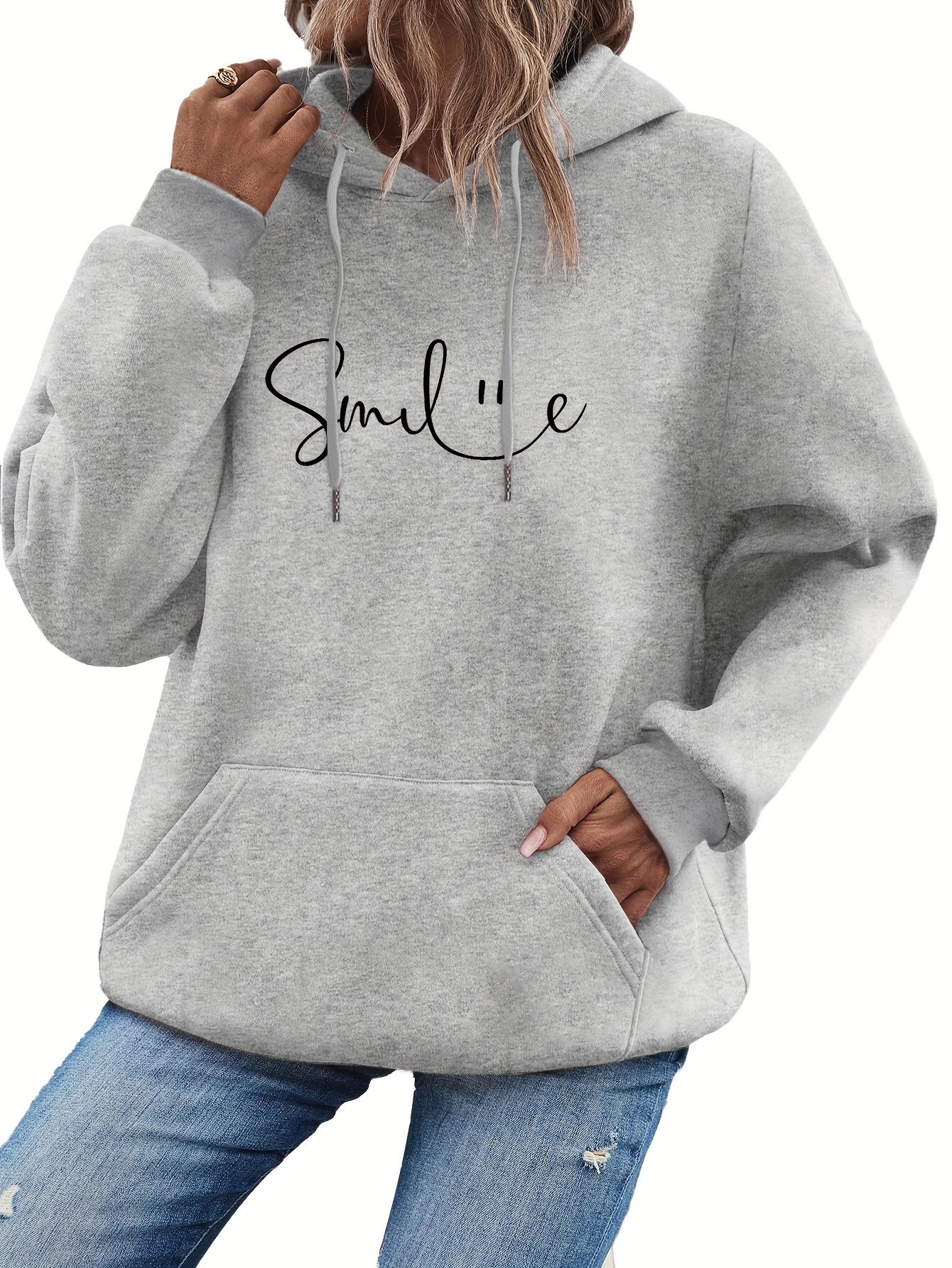 SMILE Casual Hoodie – Women's Cozy Knit Sweatshirt with Kangaroo Pocket for Fall/Winter