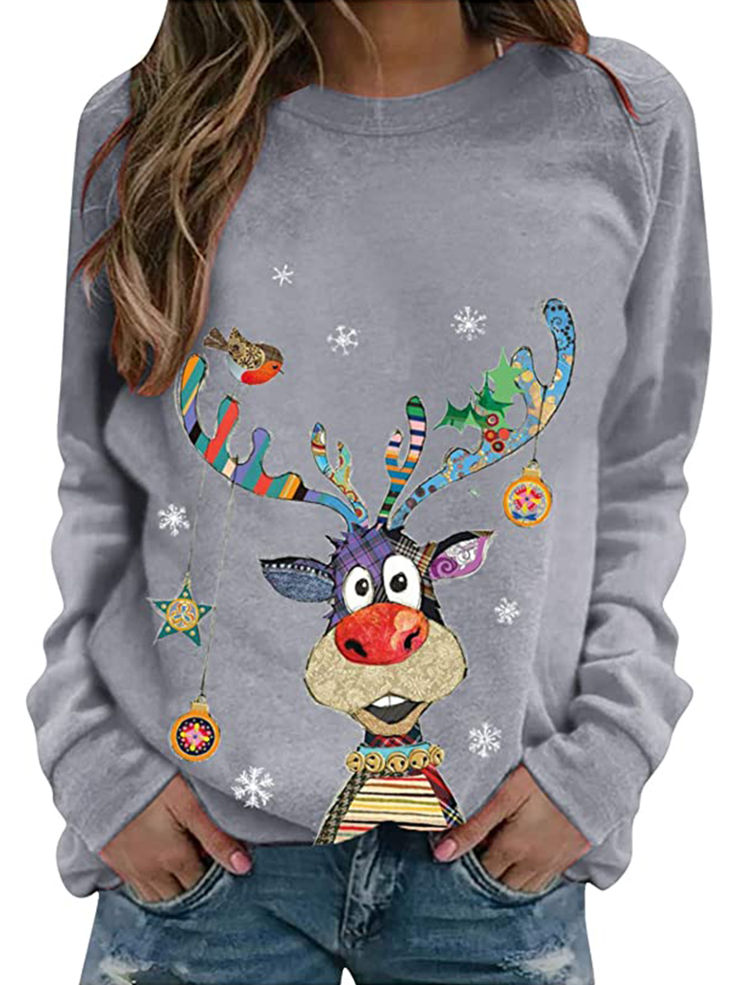 Women's Sweatshirt Casual Christmas Crew Neck Printed Long Sleeve Fashion Fall Loose Pullover