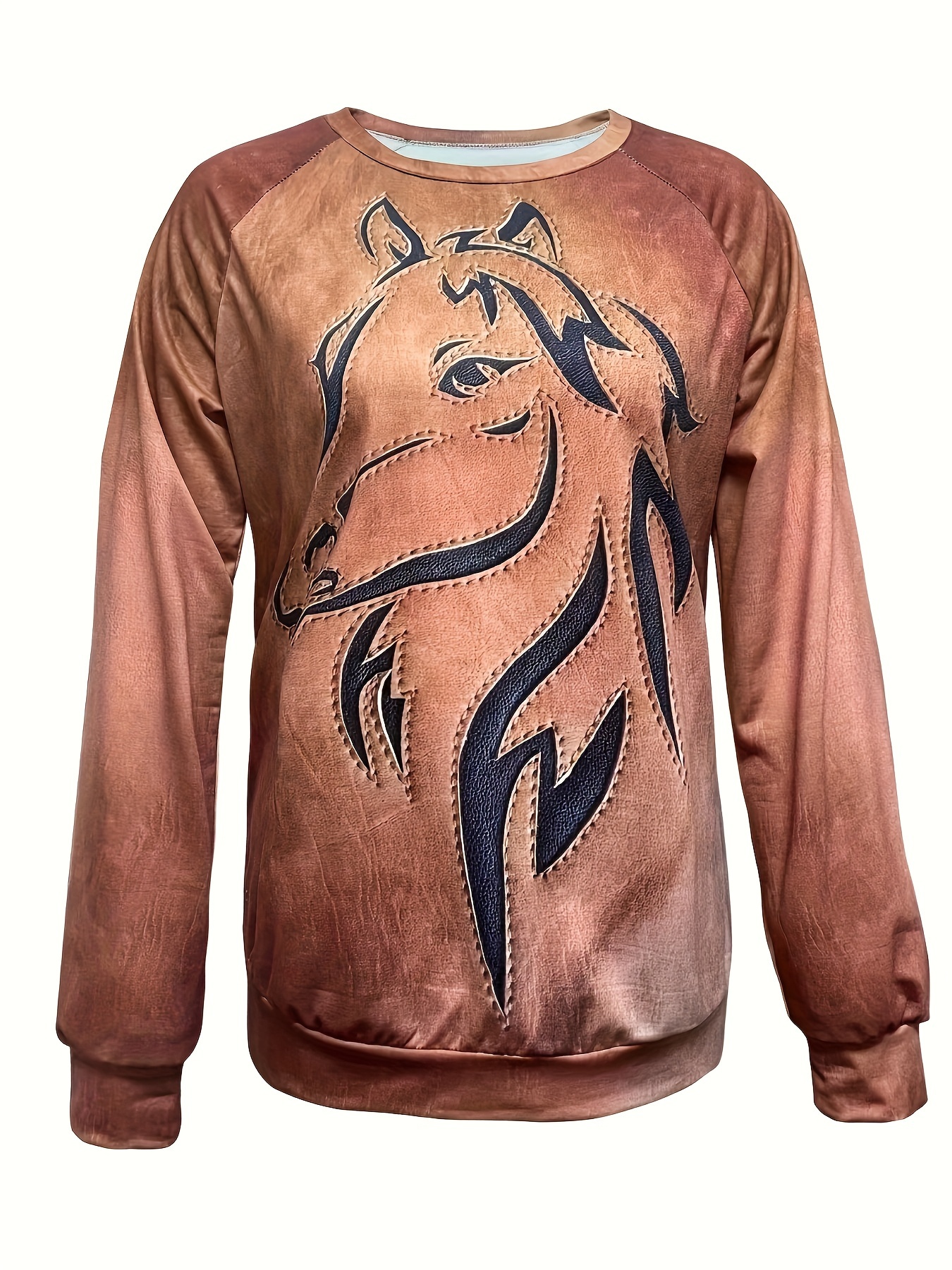 Chic Horse Print Women's Sweatshirt - Mid-Elastic, Easy-Care Knit Fabric - Elegant Style for Spring/Fall