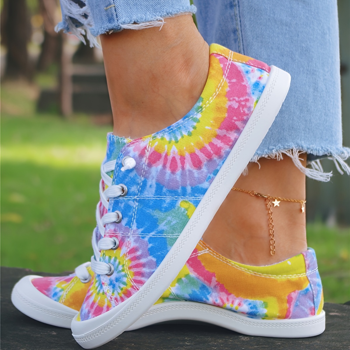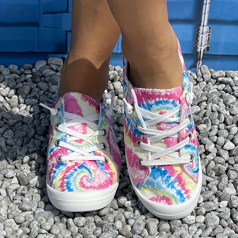 Colorful Tie-Dye Canvas Sneakers for Women - Comfortable Lace-Up Low Tops for Casual Wear