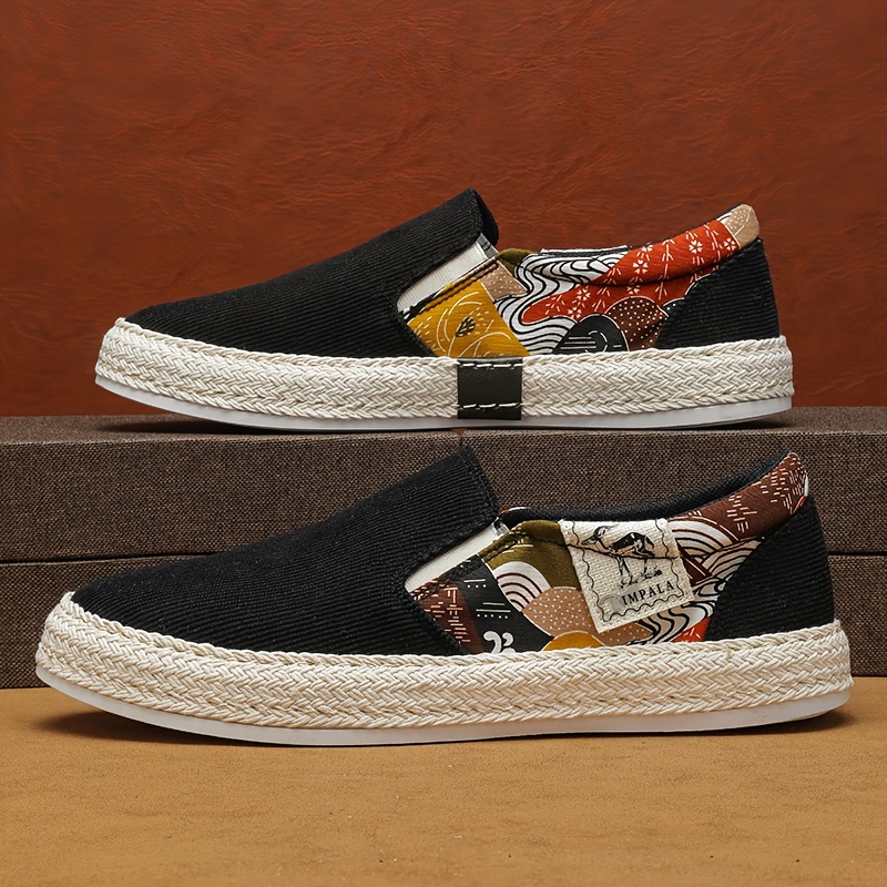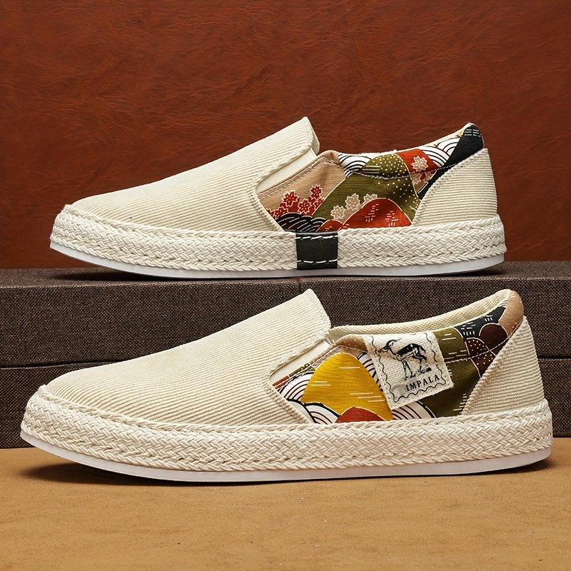 Men's Creative Pattern Design Espadrilles With Corduroy Uppers, Breathable Slip On Comfy Shoes For Outdoor Walking Driving, Spring Summer And Autumn