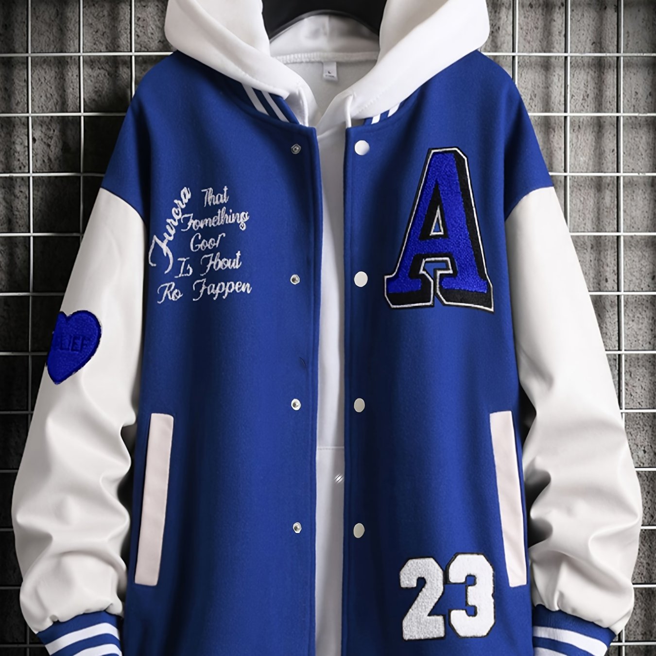 Men's Stand Collar Casual Loose Sports Jacket Color Block "A" Letter Embroidery Button Pocket Coat Top Clothes