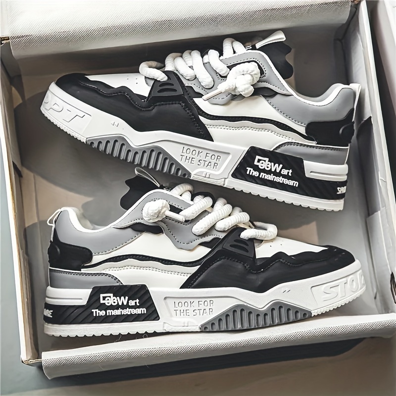 Men's Trendy Street Style Platform Skateboard Shoes, Comfy Non Slip Casual Lace Up Sneakers For Men's Outdoor Activities