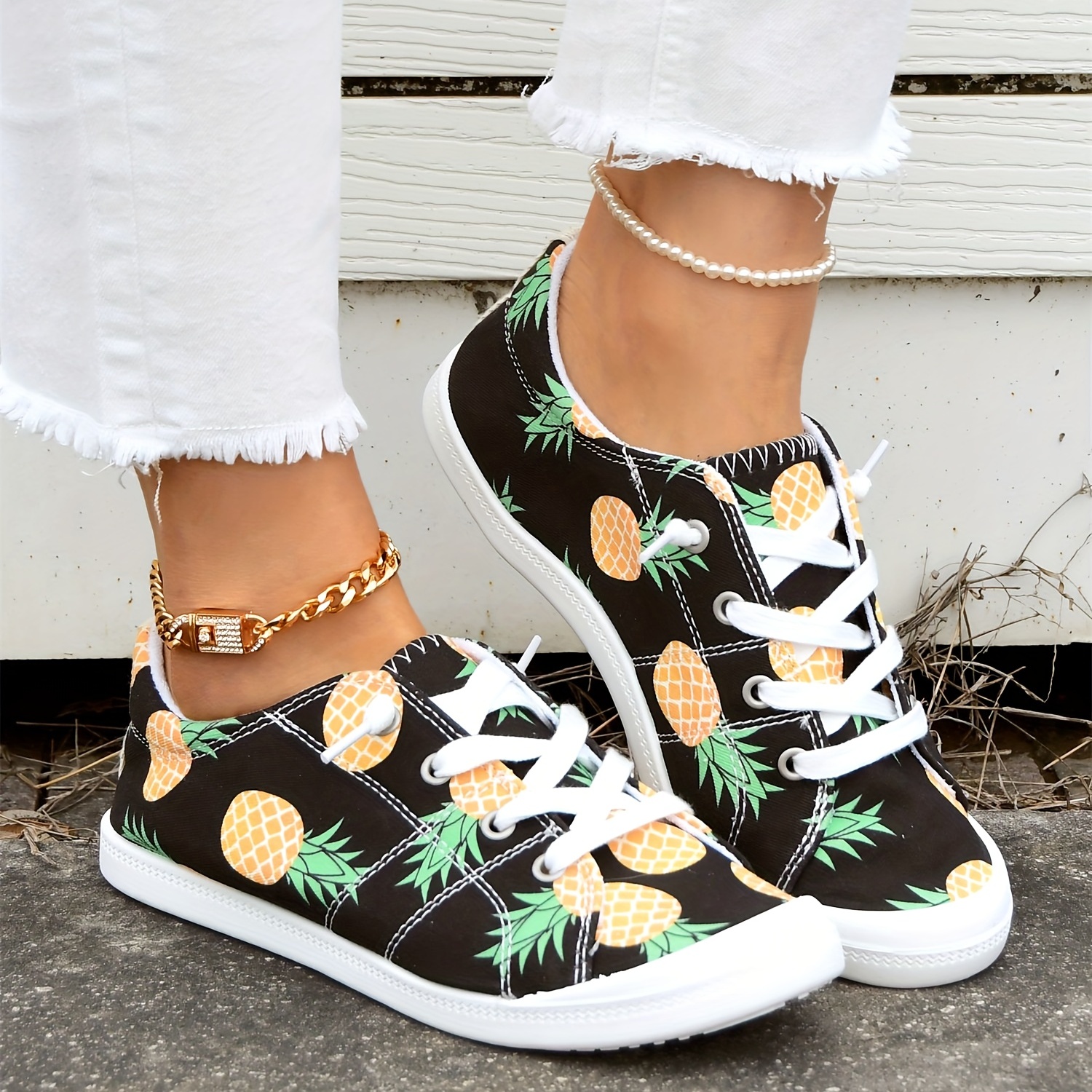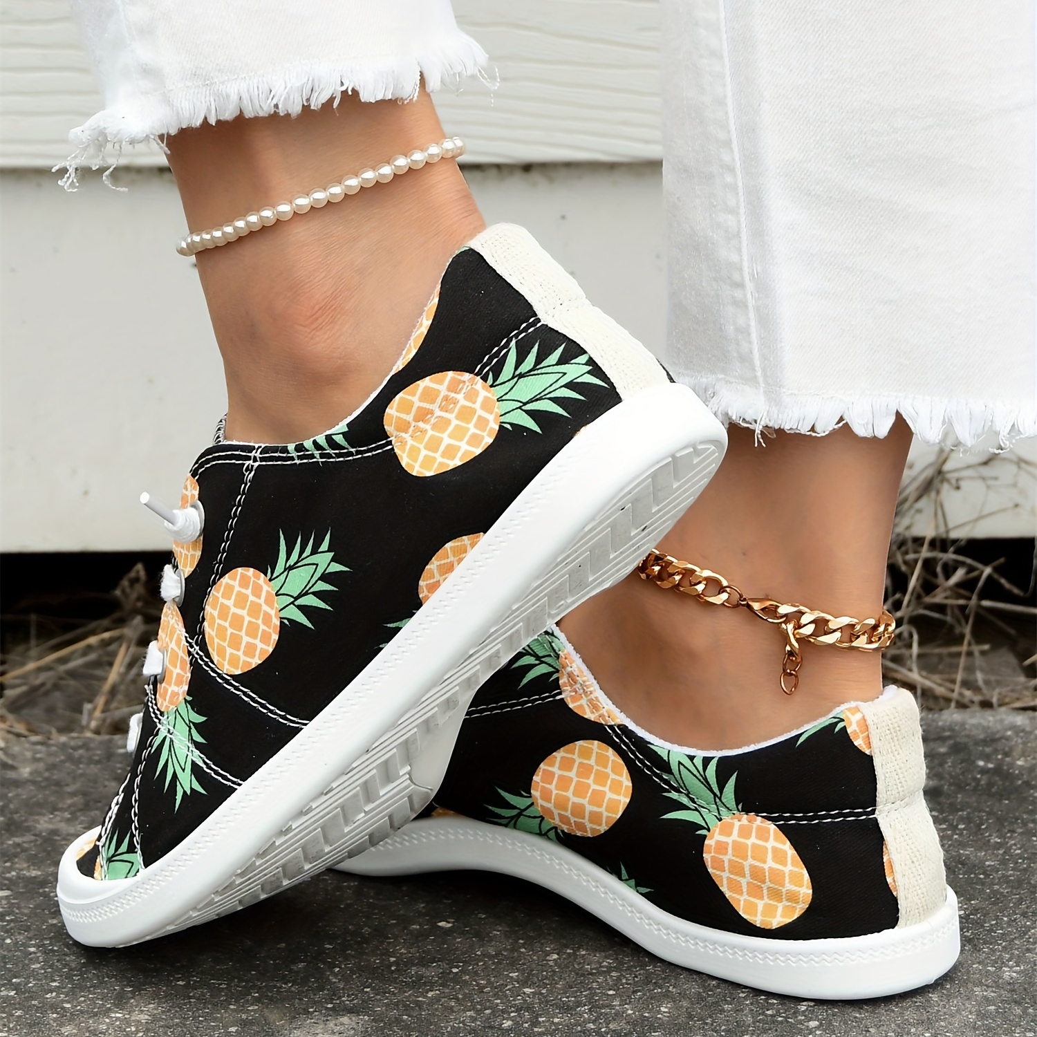Women's Pineapple Print Canvas Shoes, Casual Round Toe Low Top Flat Sneakers, Comfy Walking Shoes