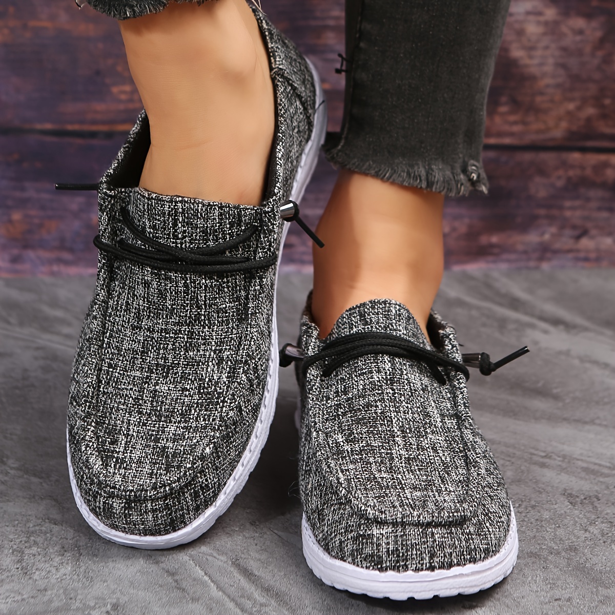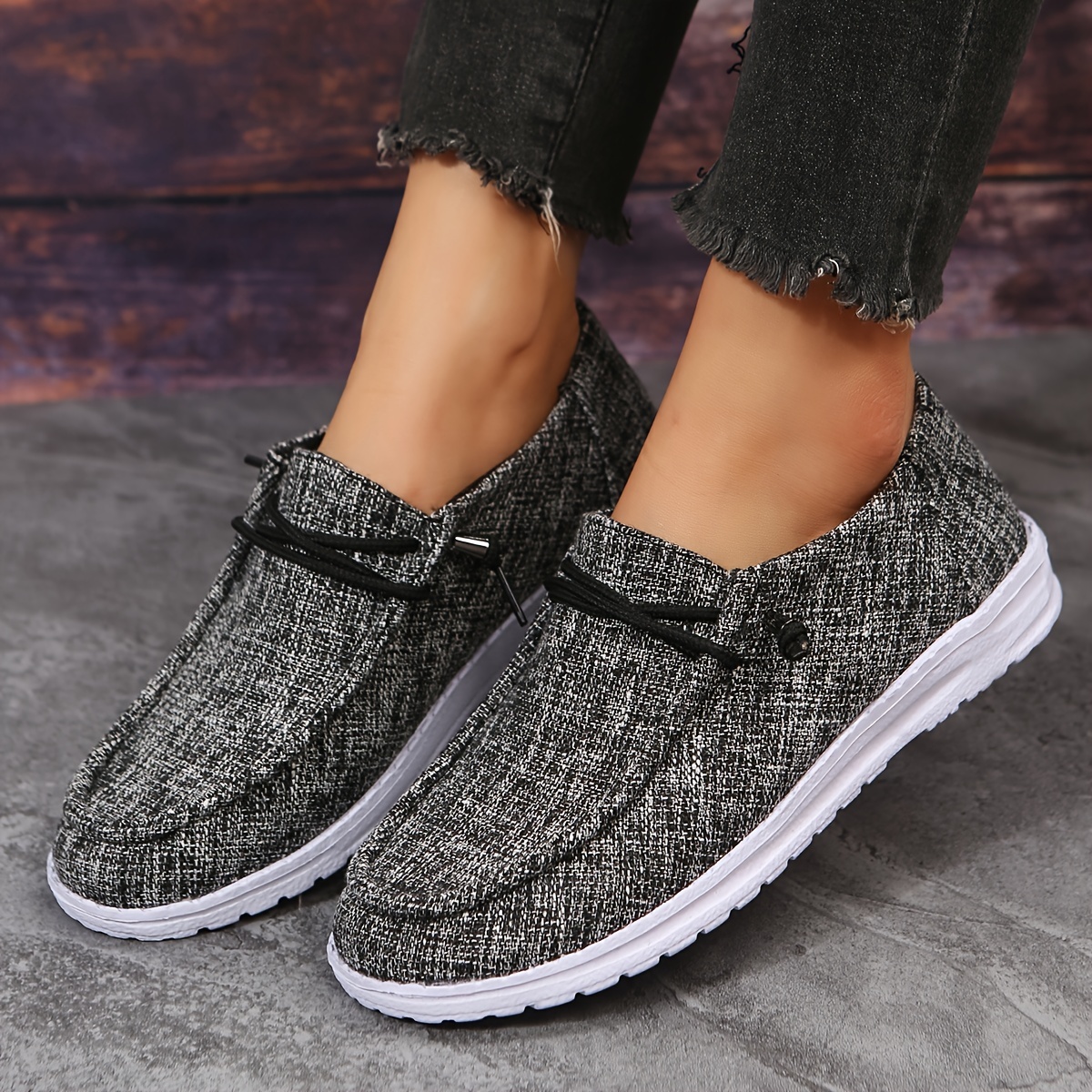 Women's Solid Color Trendy Loafers, Soft Sole Lightweight Slip On Casual Shoes, Low-top Walking Canvas Shoes